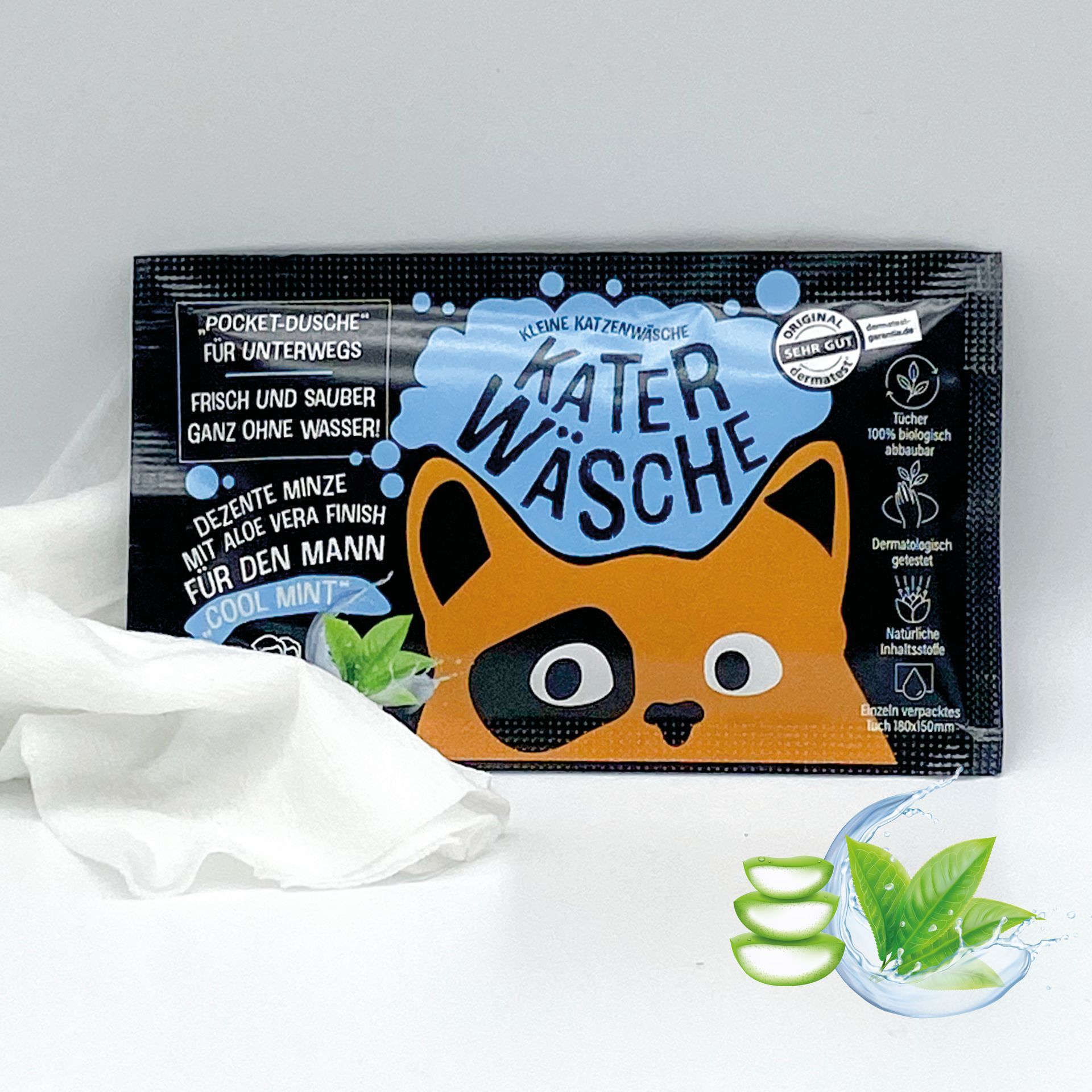 Kleine Katzenwäsche für den Mann in dezentem "cool mint" mit Aloe Vera Finish. Weil "mann" sauber duften will.